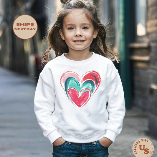 Colorful Heart Youth Sweatshirt, Valentines Day Heart Sweater, Valentine Day Kids Crewneck