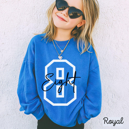 Eight Birthday Youth Sweatshirt, Birthday Boy Girl Crewneck, 8th Birthday Kids Sweater