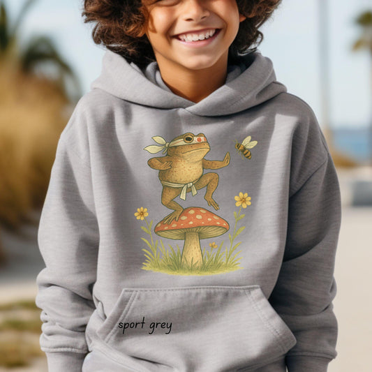 Karate Frog Youth Sweatshirt, Funny Frog Meme Crewneck, Funny Ninja Toad Kids Sweater