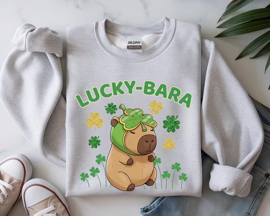 Lucky-Bara Capybara St Patricks Day Kids Sweatshirt, Faux Shamrock Lucky Charm Crewneck, Irish Festival Animal Lover Youth Sweatshirt