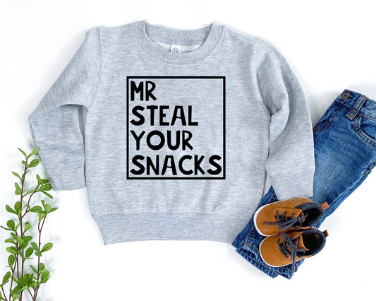 Mr Steal Your Snacks Kids Sweatshirt, Funny Snack Sweatshirt, Funny Kids Quote Sweater
