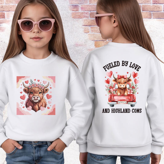 Highland Cow Youth Sweatshirt, Valentine's Day Kids Crewneck, Valentine Cow Kids Sweater