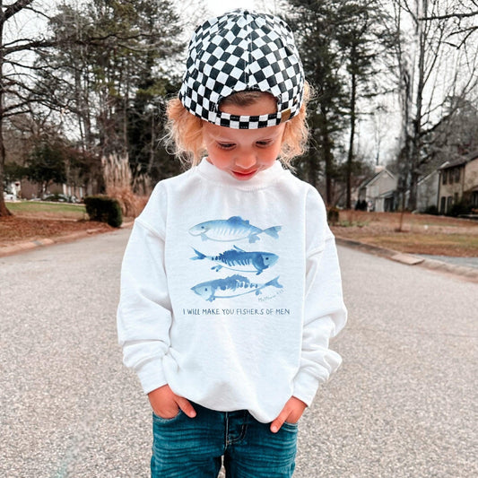 I Will Make You Fishers of Men Kids Sweatshirt, Christian Bible Verse Crewneck, Jesus Follower Sweater