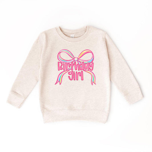 Birthday Girl Ribbon Bow Youth Sweatshirt, Coquette Birthday Crewneck, Birthday Girl Kids Sweater