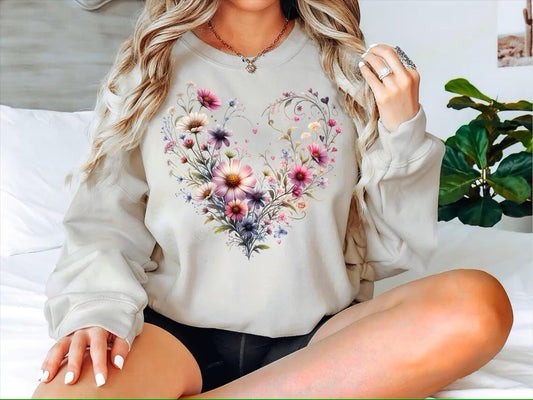 Boho Wildflower Youth Sweatshirt, Vintage Cottagecore Wildflowers Crewneck, Botanical Sweatshirt