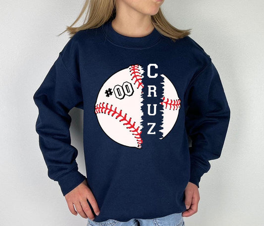 Custom Baseball Toddler Sweatshirt, Personalized Name Number Youth Sweatshirt, Baseball Number Kids Crewneck