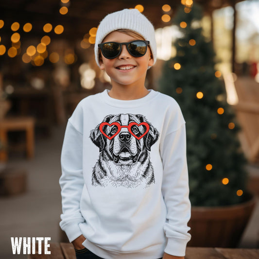 Youth Custom Dog Heart Glasses Sweatshirt, Retro Dog Lovers Sweater, Kid's Puppy Sweatshirt 4447584244