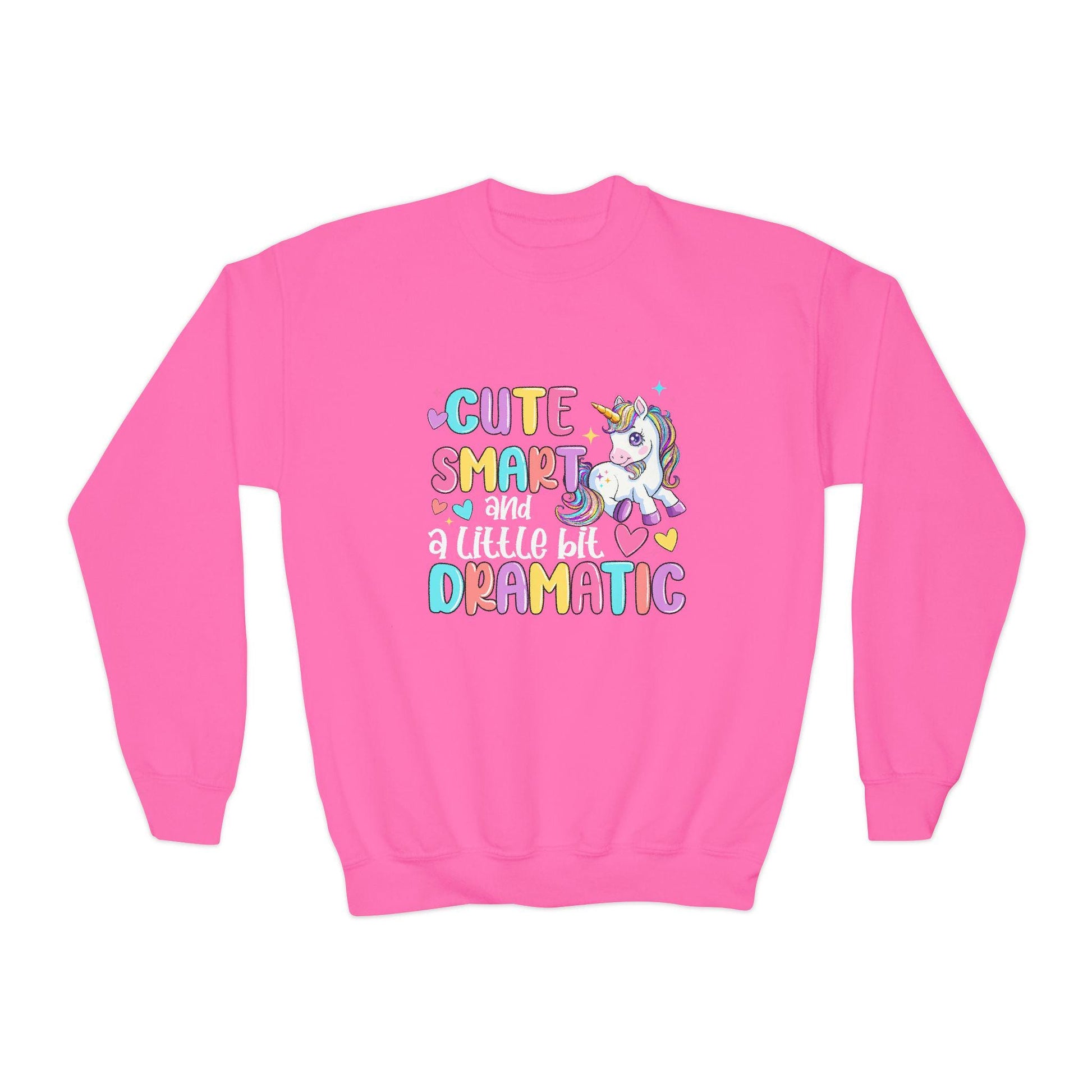 Funny Unicorn Youth Sweatshirt, Smart and Dramatic Crewneck, Cute Unicorn Kids Sweater